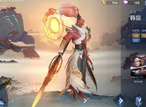 首先,让我们从外观设计说起。这款韩信典藏皮肤以中国古代名将的形象为灵感,将古典元素与现代游戏风格巧妙结合。韩信的服装采用了传统的汉服样式,颜色以红色和金色为主,既庄重又不失华丽。红色象征着热情与力量,金色则代表着尊贵与荣耀,两者相得益彰。
